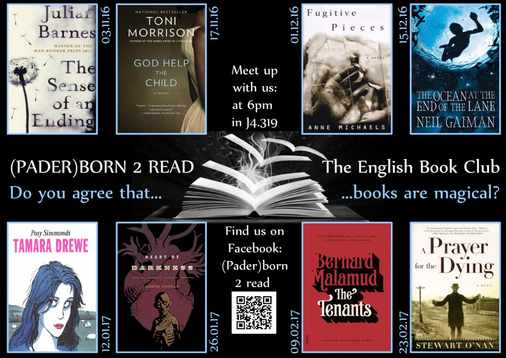 Once upon a time—in winter term 2011/2012 to be exact—a group of students at Paderborn University’s Department of English and American Studies decided that reading and discussing literature in seminars simply was not enough. There were so many stories to indulge in, so many genres, eras, and authors to explore, and so many thoughts to share. They were born2read. They were the founders of the English Book Club.